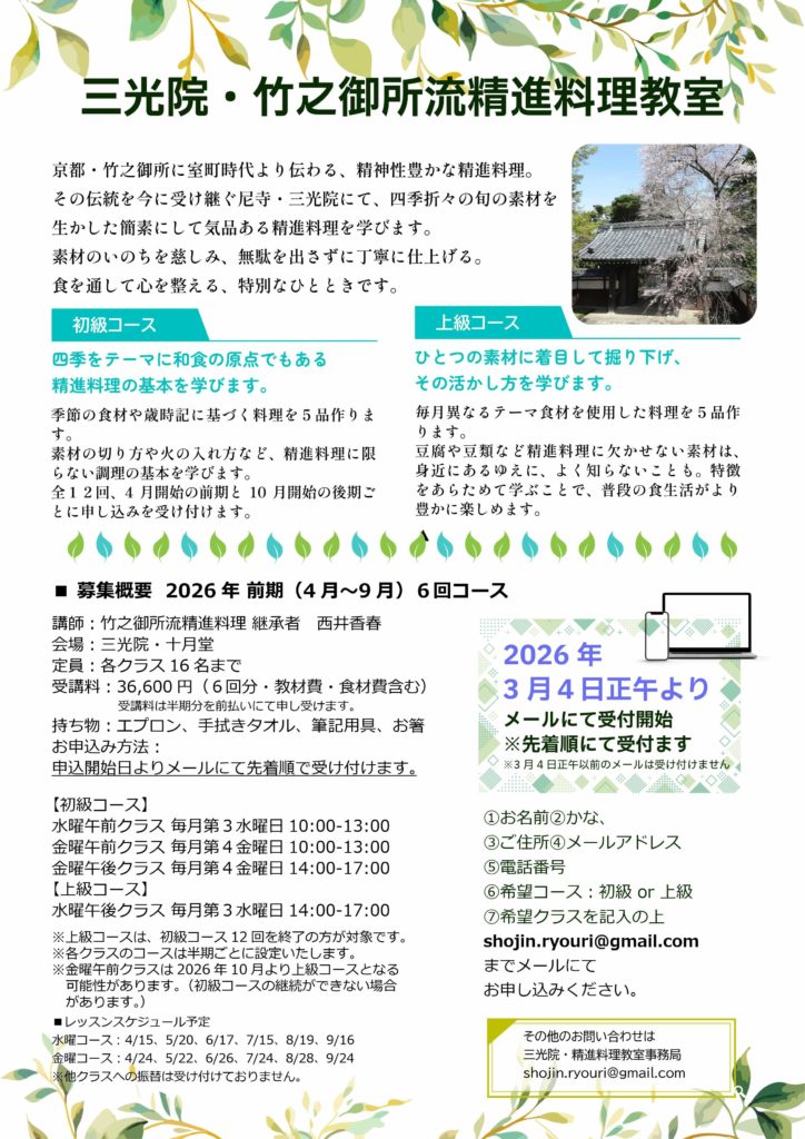 2026年前期 精進料理教室のご案内